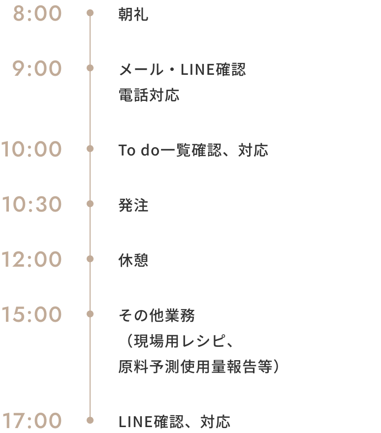 転職の軸は、家族と過ごす時間を大切にできる土日休みの職場であること、そしてパティシエとして培った技術や知識を活かせる環境であることでした。この会社は、その両方を満たしており、仕事のやりがいとプライベートの両立ができる点に魅力を感じ、入社を決めました。